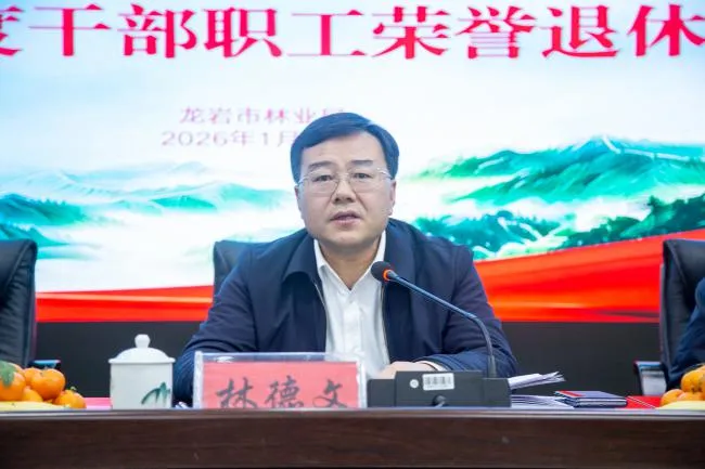 为深入贯彻落实习近平总书记关于老干部工作的重要论述,进一步增强退休干部的政治荣誉感与组织归属感,1月30日下午,龙岩市林业局在局411会议室举行2025年度干部职工荣誉退休仪式。局领导、2025年度退休干部职工、局机关各科室(单位)及林科所、规划所负责人、青年干部代表参加仪式。