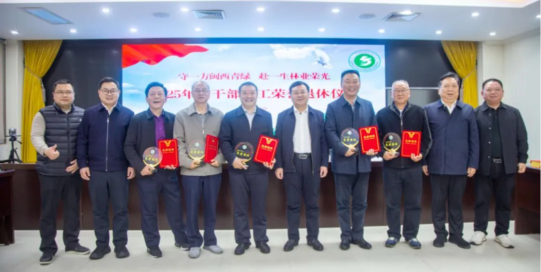仪式结束后,局领导与全体2025年度退休干部合影留念。此次荣誉退休仪式,既传递了组织对退休干部的关怀,更在全局营造了“敬前辈、学先进、传薪火”的氛围,激励新一代林业人接过“接力棒”,续写龙岩林业高质量发展的新篇章。