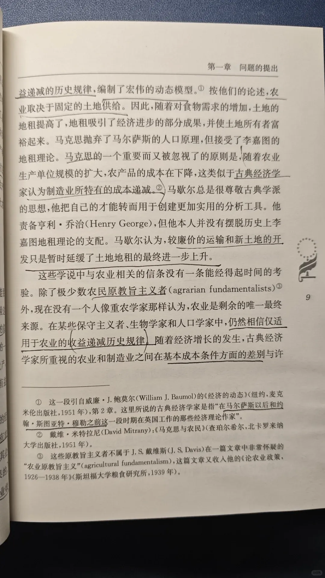 粮食和农业问题一再被作为检验新概念与分析工具的场所。相对于土地而言,劳动和物质资本的收益递减与李嘉图式的地租都是例证。