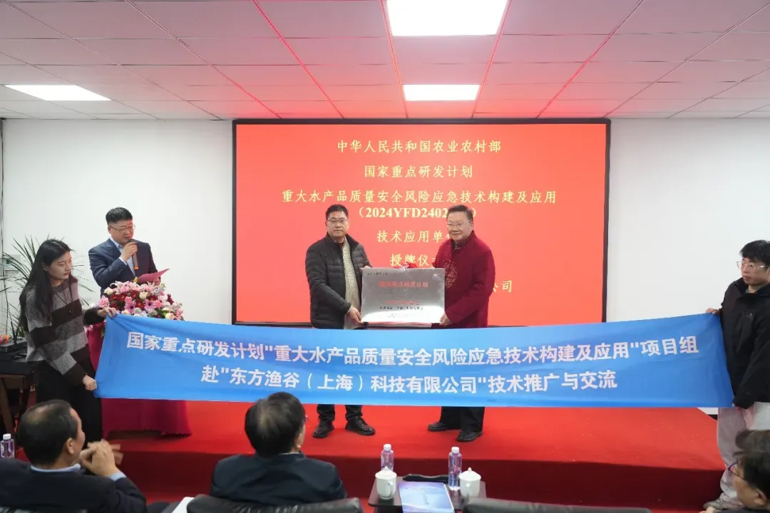研讨会迎来重要时刻 ——“上海海洋大学‘十四五’国家重点研发项目 —— 水产品安全风险控制重大项目东方渔谷示范基地” 授牌仪式。此次授牌标志着安心渔在产学研融合领域迈出关键一步,将推动科研成果与产业实践深度结合,为水产品安全风险控制树立行业标杆。