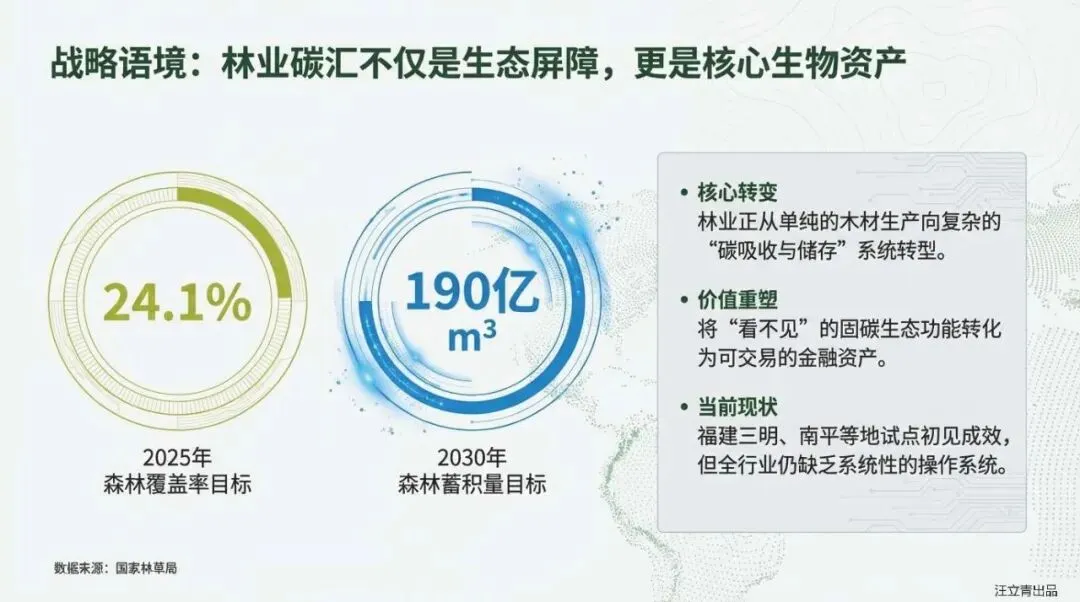 在“双碳”战略的宏大叙事下,如何将沉睡的森林资源转化为流动的“金山银山”?这份报告为您揭示了林业碳汇作为“生态产品价值实现”核心路径的巨大潜力。它指出,林业碳汇不仅是国家应对气候变化的战略要地,更是将生态功能“商品化”的全新风口。面对2030年森林蓄积量达到190亿立方米的宏伟目标,碳汇市场规模蓄势待发,谁能率先掌握从“种树”到“卖碳”的底层逻辑,谁就能在这场绿色财富大洗牌中抢占先机。