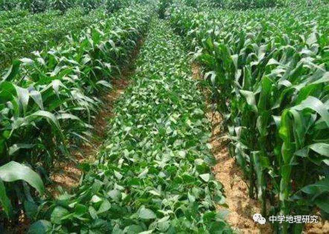 间作:同一田地(同一生长期内)分行或分带相间种植两种或两种以上作物的种植方式。 如图