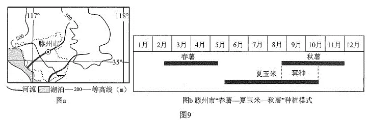 (2)(秋季天气较冷,)若推迟播种,难以满足秋薯的积温需求;(2分)8.9月温度较高,而高秆玉米可为马铃薯遮阳降温。(2分)