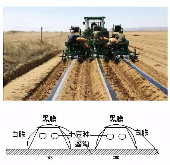 例4:内蒙古包头市固阳县是我国土豆的重要产区,该地通过薄膜高垄侧播技术(大垄双行高密度栽培,机械播种、铺设滴灌带、覆膜、覆土、镇压联合作业),实现了马铃薯每亩增产2000多斤。回答下列问题。