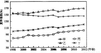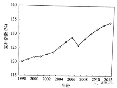 (1)概述1998~2012年中国耕地复种指数的特点。