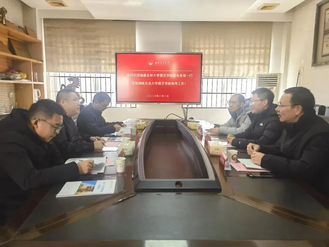 2月1日上午,福建农林大学园艺学院院长吴双、党委书记孙思惟和副院长钟凤林一行3人来湖南农业大学园艺学院交流。湖南农业大学园艺学院院长武涛、党委书记何长征以及副院长熊程出席交流活动。