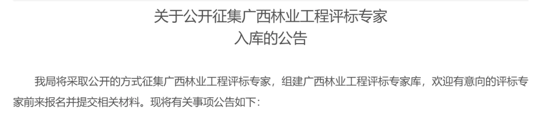 我局将对各广西林业工程评标专家的报名材料进行审核、评估,认定合格后确认入库。