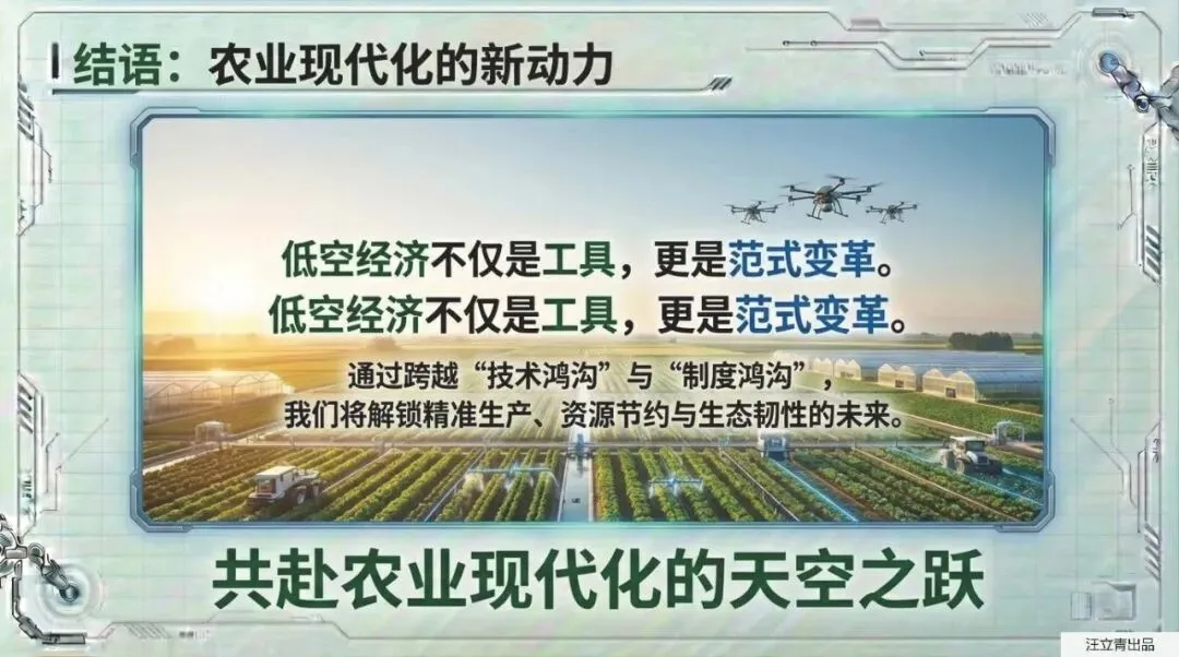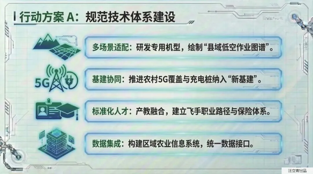 面对未来的中国农业,我们不能再做“拿着金饭碗讨饭”的低效重复,一套“技术规范化+制度系统化”的中国方案亟待落地。在技术侧,我们要像修路一样建设“低空新基建”,在田间地头部署5G基站与充电桩,打破基础设施的城乡鸿沟,并针对丘陵山地研发“特种部队”般的适配机型。在制度侧,必须打破“九龙治水”的空域管理僵局,建立县域级的低空数字化调度平台,让无人机起飞不再“无路可走”。更关键的是,我们要激活沉睡的“数据资产”,建立数据确权与交易机制,让无人机从单纯的“喷药工”进化为采集农情数据的“超级入口”。未来的农业低空经济,将不再是卖飞机的生意,而是卖服务、卖数据、卖决策的全新商业物种。谁能率先打通这条从“技术飞天”到“产业落地”的最后一公里,谁就能掌握中国农业现代化的下一个黄金十年。