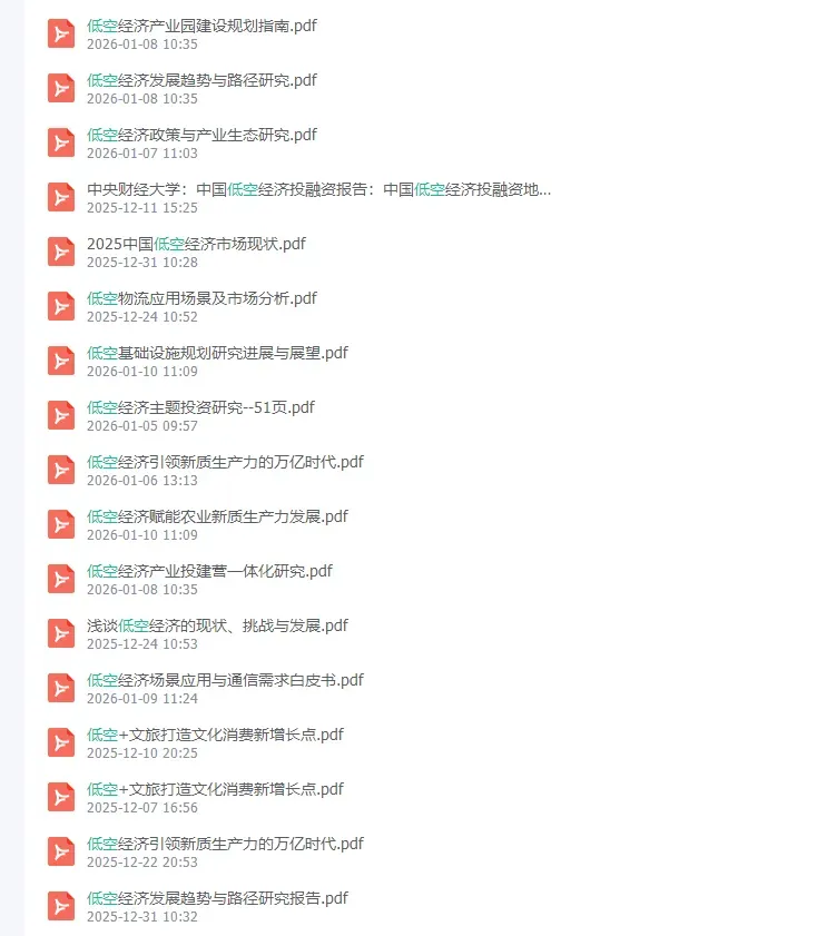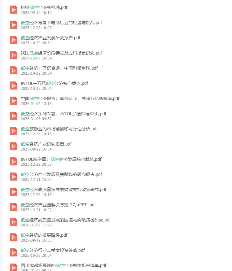 很多朋友对这类低空经济的文件比较感兴趣,正好我们的团队创建了低空经济资料库,这是目前为止全网最多的低空经济学习文件的分享平台。上面有几百份关于低空经济相关的文献,助力大家学习和进阶,看看这些资料有没有你想看的?