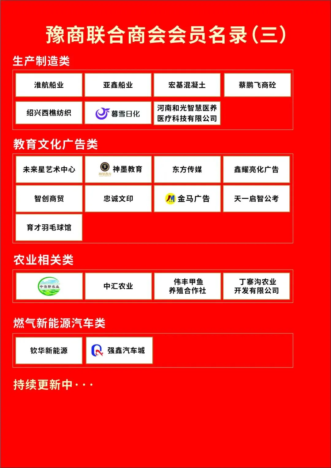 商会70家会员单位已实现十大行业全域覆盖,囊括房产家居建材、酒水食品、服饰鞋包、餐饮住宿酒店、家电数码零售商贸、纺织智能服装、造船、服务维修、燃气新能源汽车、教育文化广告及农业等淮滨重点产业。