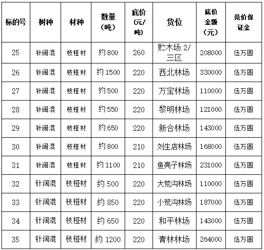 2.最终枝桠材成交数量按实际检斤数量为准。