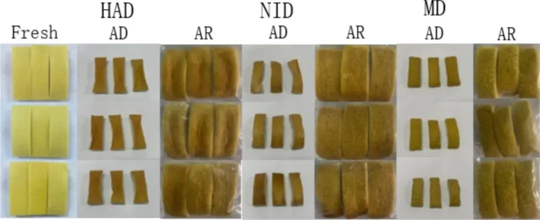 5.应用启示:MD法适用于快速小批量干燥;NID法推荐用于需保持品质的高价值产品;HAD法则更适合以复水为优先目标的应用场景。本文开发的UPA-NID工艺为果蔬副产品的高价值利用提供了可行路径。