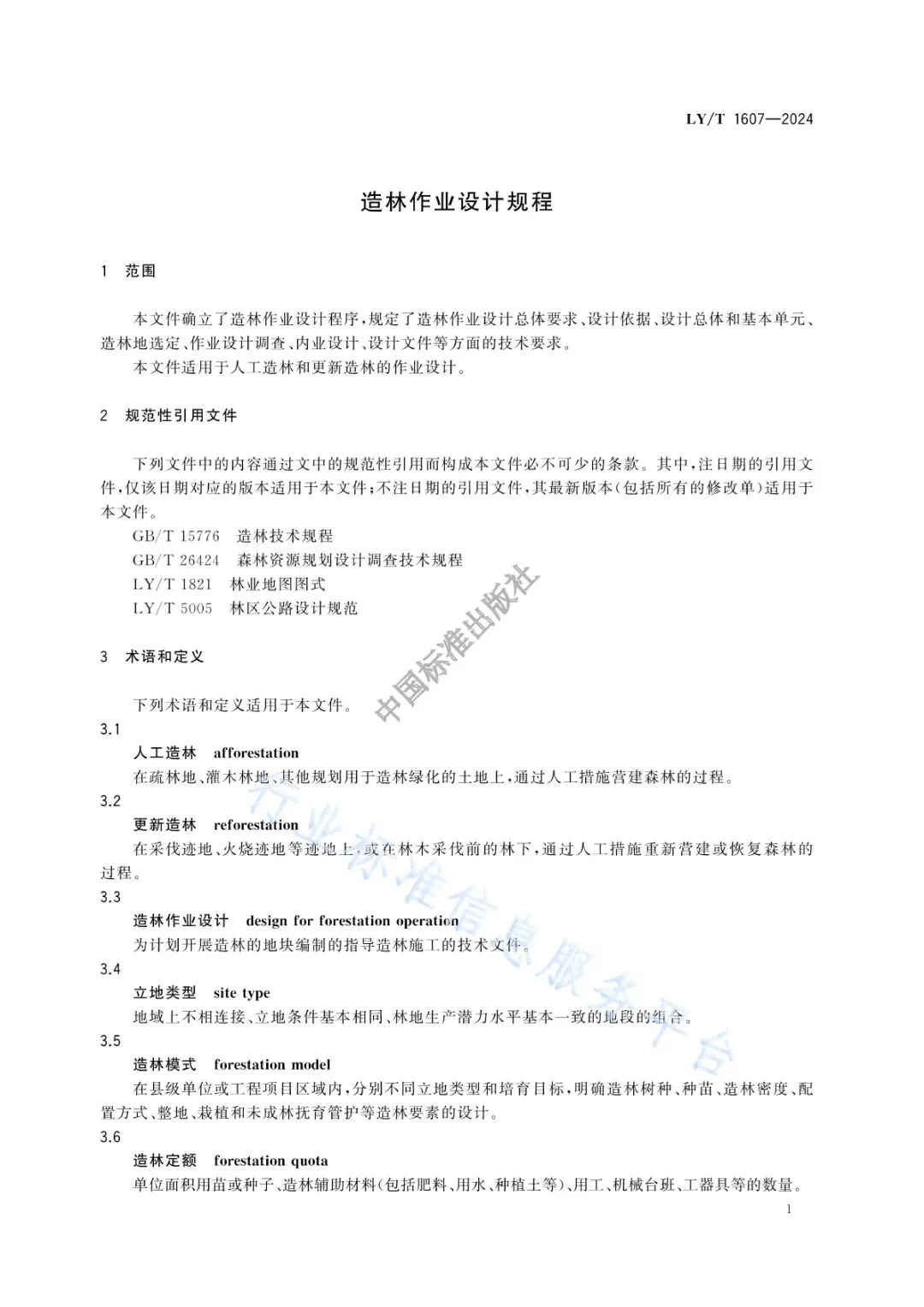 《造林作业设计规程》(LY/T 1607-2024)