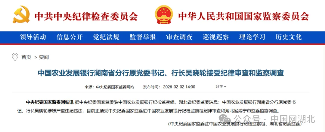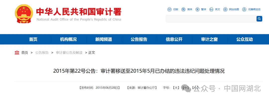 2015年6月28日,国家审计署网站发布《2015年第22号公告:审计署移送至2015年5月已办结的违法违纪问题处理情况》。其中包括中国农业发展银行湖南分行原行长吴晓轮违规批准发放贷款问题。