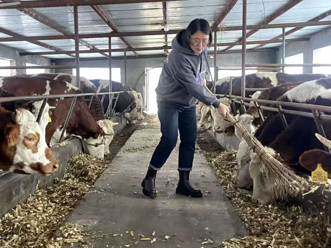 “想要发展必须走种养结合的路子。”2016年末,董辉瞄准了生态循环农业模式——以种植带动养殖,用养殖反哺种植。当时,恰逢邻村一家养牛场出售,她毅然说服父母抵押了二十多年积攒的全部家当,并寻求亲朋帮助,又在银行贷款200万元,买下养牛场成立了鸭园镇庆阳家庭农场,之后又相继投资50万元扩建翻新。