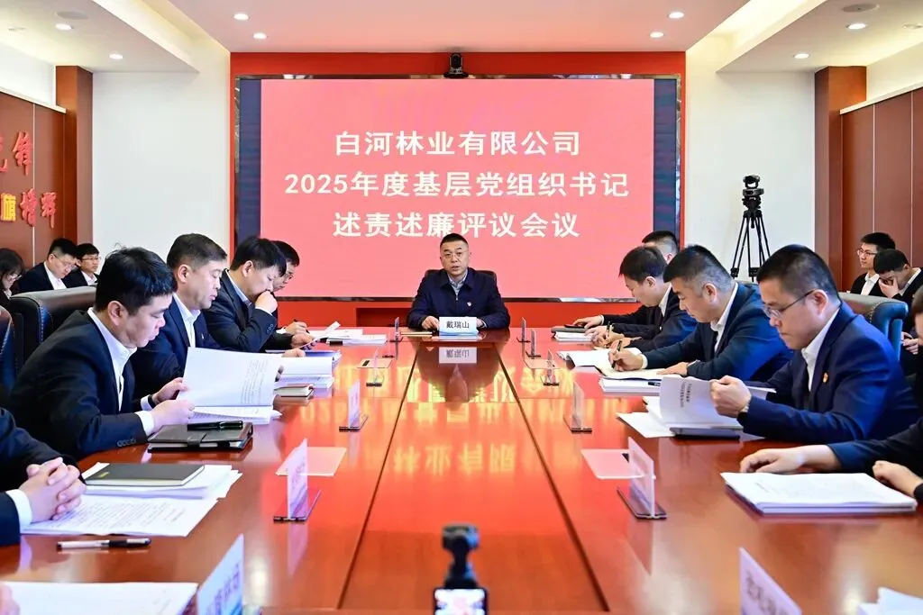 为深入贯彻落实集团党委全面从严治党工作部署,层层压实管党治党政治责任,2月3日,白河林业有限公司党委组织召开2025年度基层党组织书记述责述廉评议会议,通过述责述廉、现场点评、民主测评等环节,推动全面从严治党向基层延伸、向纵深发展,为公司高质量发展筑牢坚实政治保障。公司党委书记、董事戴瑞山主持会议并讲话。