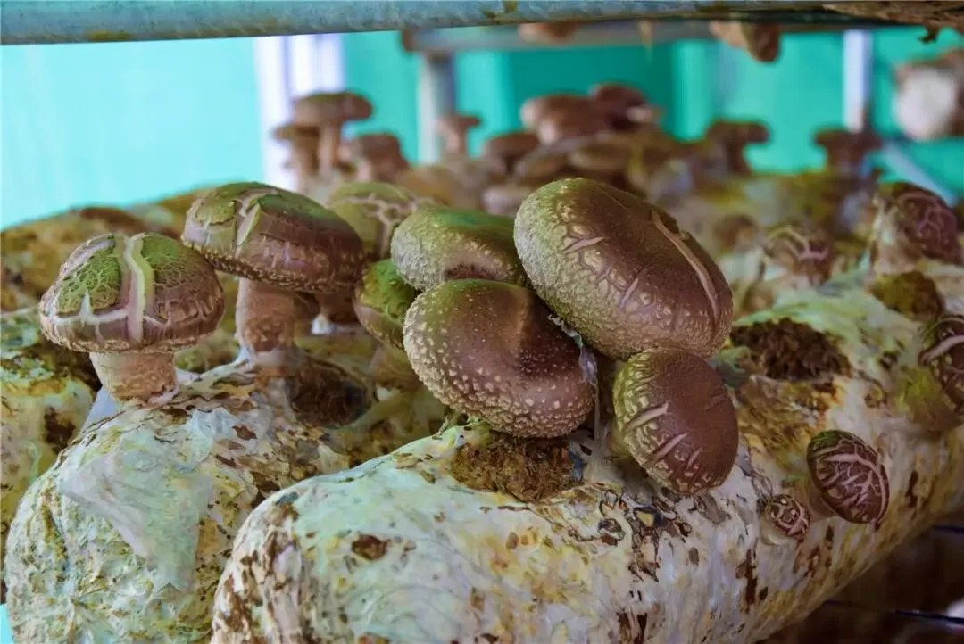 敖汉旗贝子府镇万家菌业香菇种植棚内朵朵香菇圆实肥硕、长势喜人。