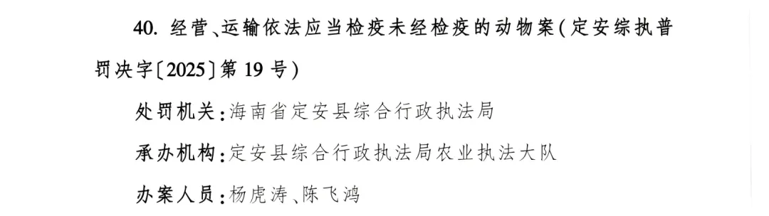 喜报!定安县综合行政执法局1宗案例被农业农村部列为高质量案卷