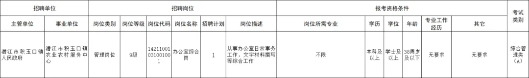 拟公开招聘事业单位工作人员1名