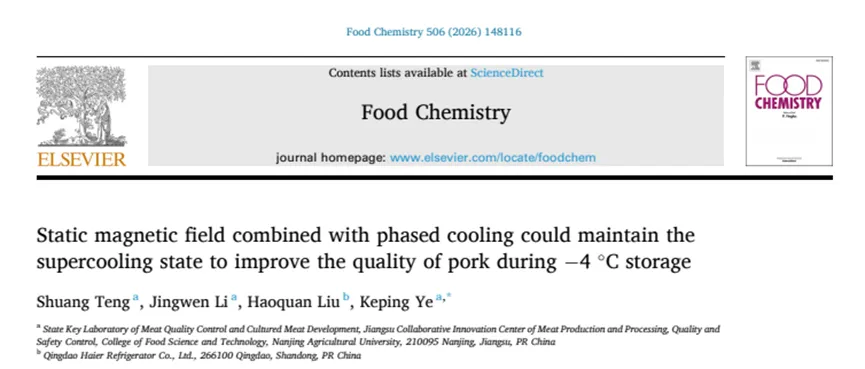 Food Chemistry| 通过静磁场结合分阶段降温保持猪肉-4℃的过冷态来提升贮藏品质