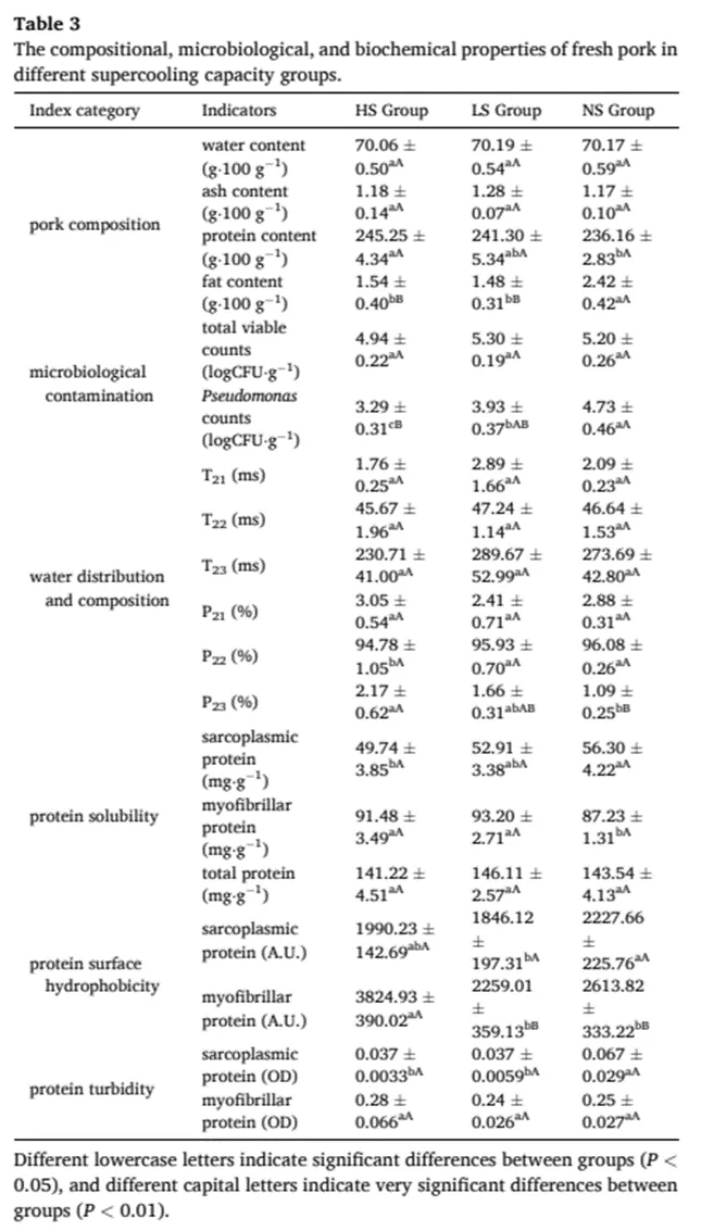 3.超冰温贮藏对生鲜猪肉品质的影响