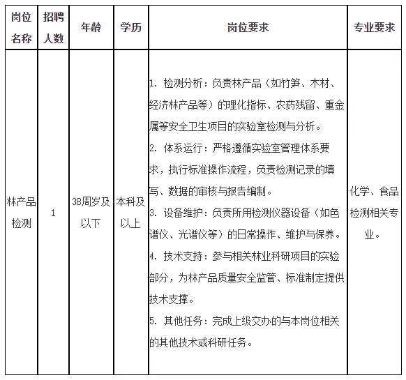 根据工作需要,泸州市林业科学研究院委托泸州融兆人力资源管理有限公司招聘编外聘用人员1名。现将有关事项公告如下: