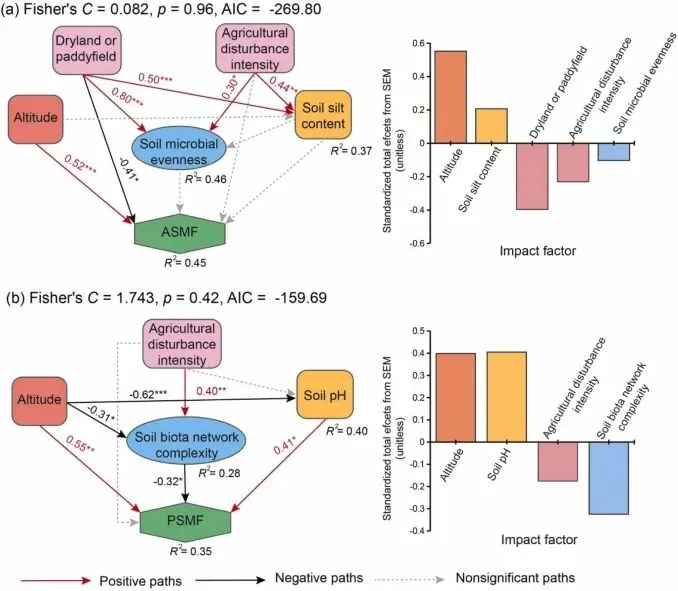 标签:#山区农田 #土壤多功能性 #农业干扰强度 #结构方程模型 #变差分解分析 #微生物网络分析