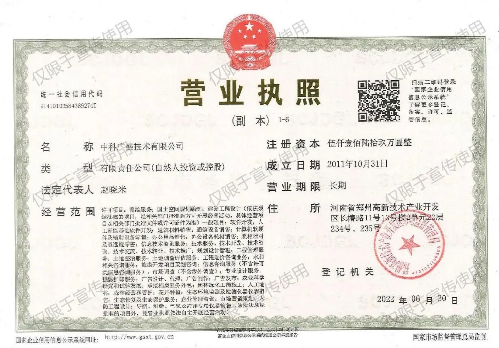 >中科广盛技术有限公司,林业调查规划设计乙级
