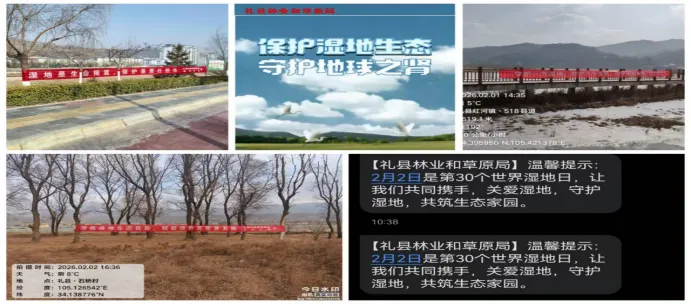 2月2日是第30个世界湿地日,今年主题为“湿地与传统知识:致敬文化遗产”。为深入贯彻《湿地保护法》,礼县林业和草原局以“线上科普+线下互动”的多元形式,开展系列湿地保护宣传活动,让“地球之肾”的生态价值与文化底蕴深入人心,凝聚起全社会共同守护湿地的强大合力。