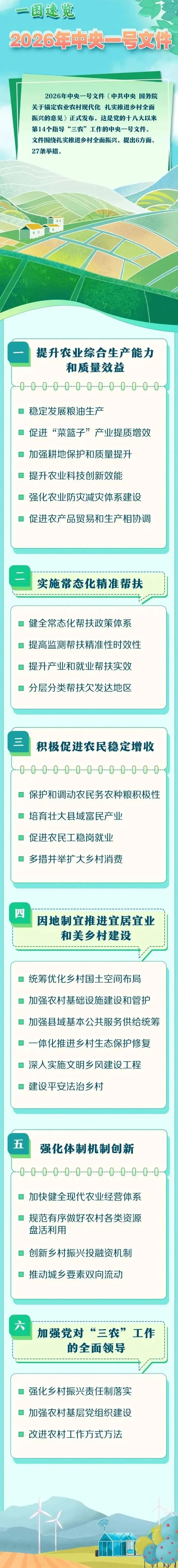 2026年是三农发展的关键开局之年,中央一号文件的出台为三农工作定下了总基调、明确了施工图。从田间地头的科技赋能,到乡村振兴的精准帮扶,再到城乡融合的协同发展,三农发展正朝着现代化的方向稳步前行。相信随着各项政策落地见效,农业将更有活力、农村将更有魅力、农民将更有幸福感,为中国式现代化筑牢坚实的“三农基础”。