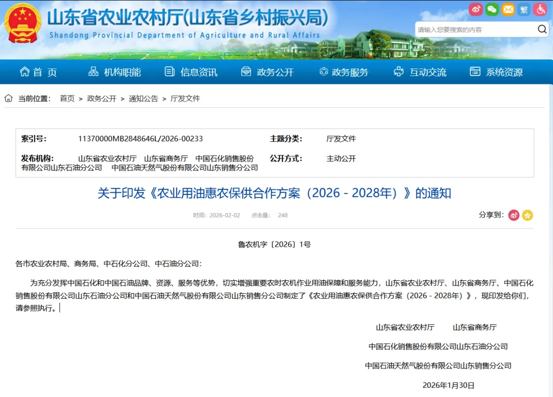 为充分发挥中国石化、中国石油品牌、资源、服务等优势,增强农机作业用油保障和服务能力,推进农业机械化,保障粮食和重要农产品稳定安全供给,助力农业农村现代化,经山东省农业农村厅、山东省商务厅、中国石化销售股份有限公司山东石油分公司和中国石油天然气股份有限公司山东销售分公司(以下简称“中国石化”“中国石油”)认真研究、充分协商,制定本合作方案。