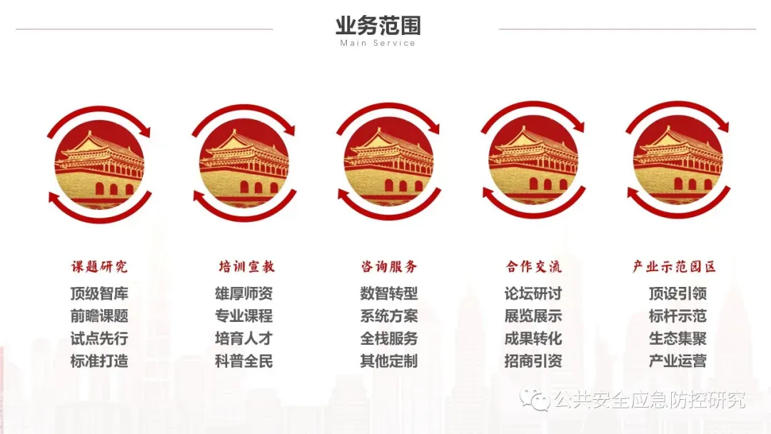 六、中国灾害防御协会安全应急产业分会可为政府与企业等产业方提供四个方面工作支撑: