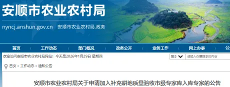 安顺市农业农村局关于申请加入补充耕地质量验收市级专家库入库专家的公告