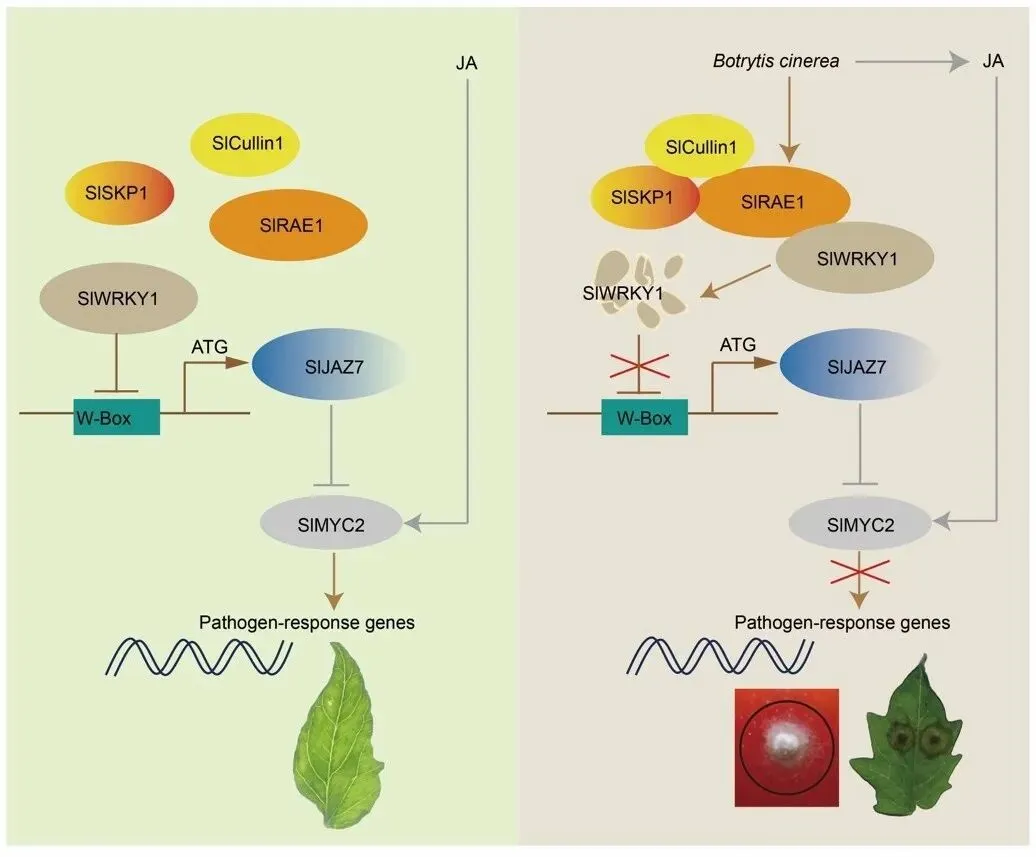 图1. SCFSlRAE1调控番茄灰霉抗性的工作模型