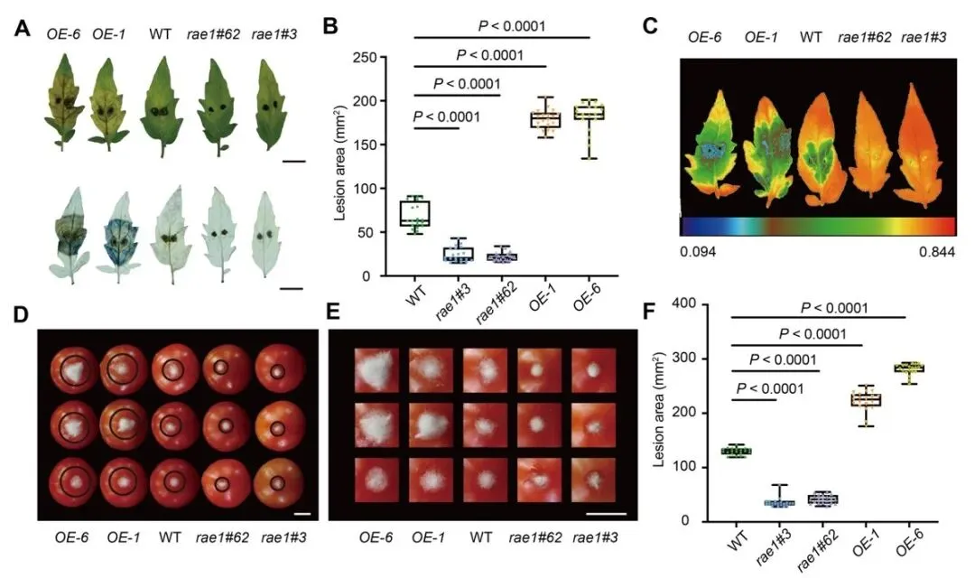 图2. 敲除SlRAE1 提高了番茄的灰霉病抗性