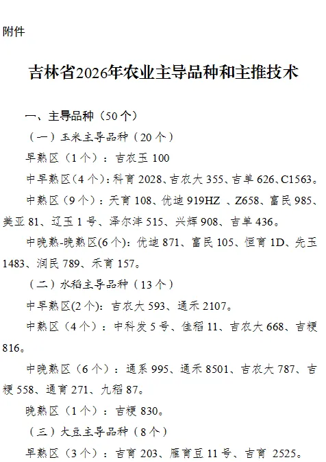 关于2026年度吉林省农业主导品种和主推技术的公示