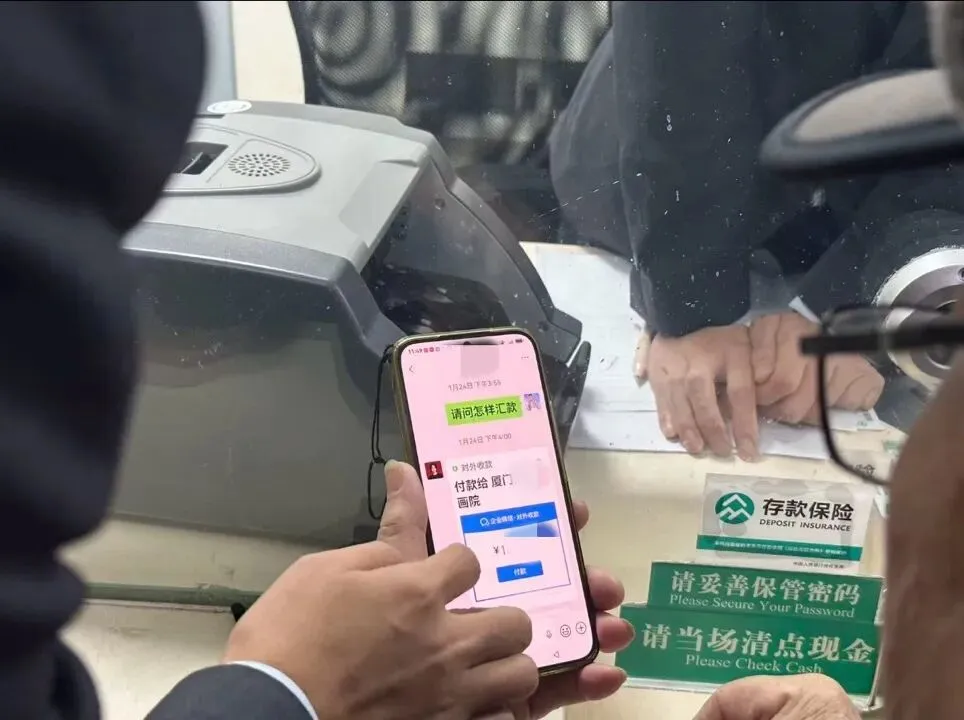 网点负责人与内勤行长第一时间来到老人身边。他们没有急于否定,而是先将老人请到安静的休息区,递上一杯温水,安抚其情绪。在缓和的气氛中,老人逐渐道出原委:原来,老人在微信上结识了一位“艺术顾问”,在发送了自己的画作后,对方盛赞其作品“极具水准”,并通知他在一个未经核实的比赛中“荣获一等奖”,但需要支付一笔“手续费”及“奖金税费”才能领取高额奖金,并发来了一个转账链接。