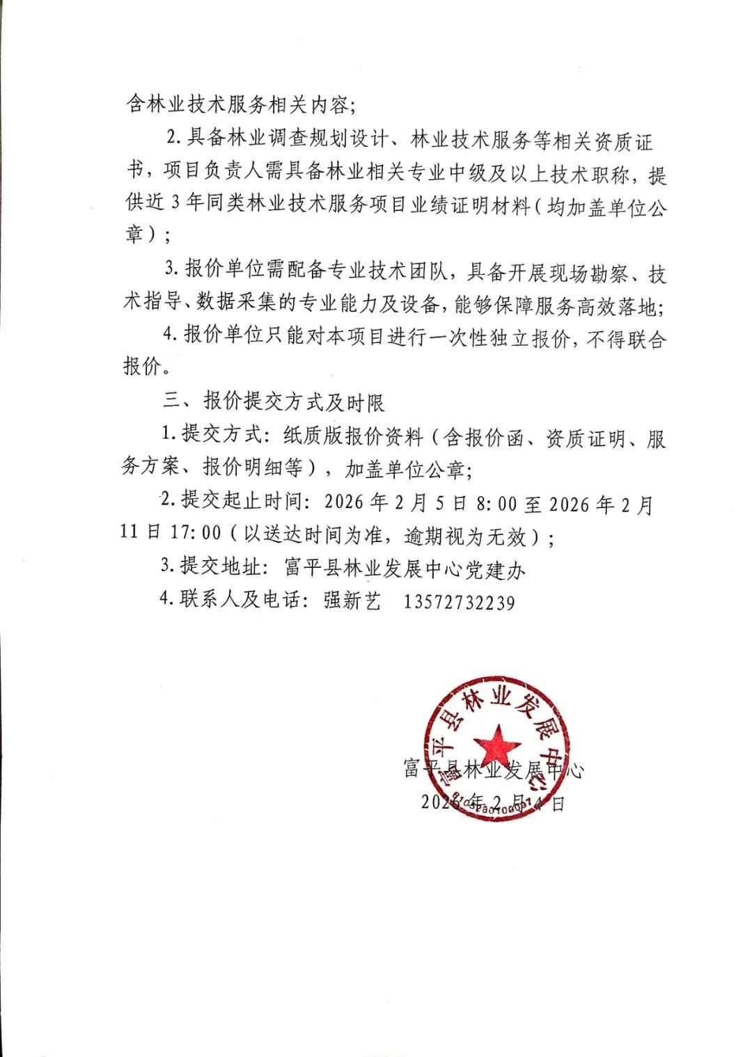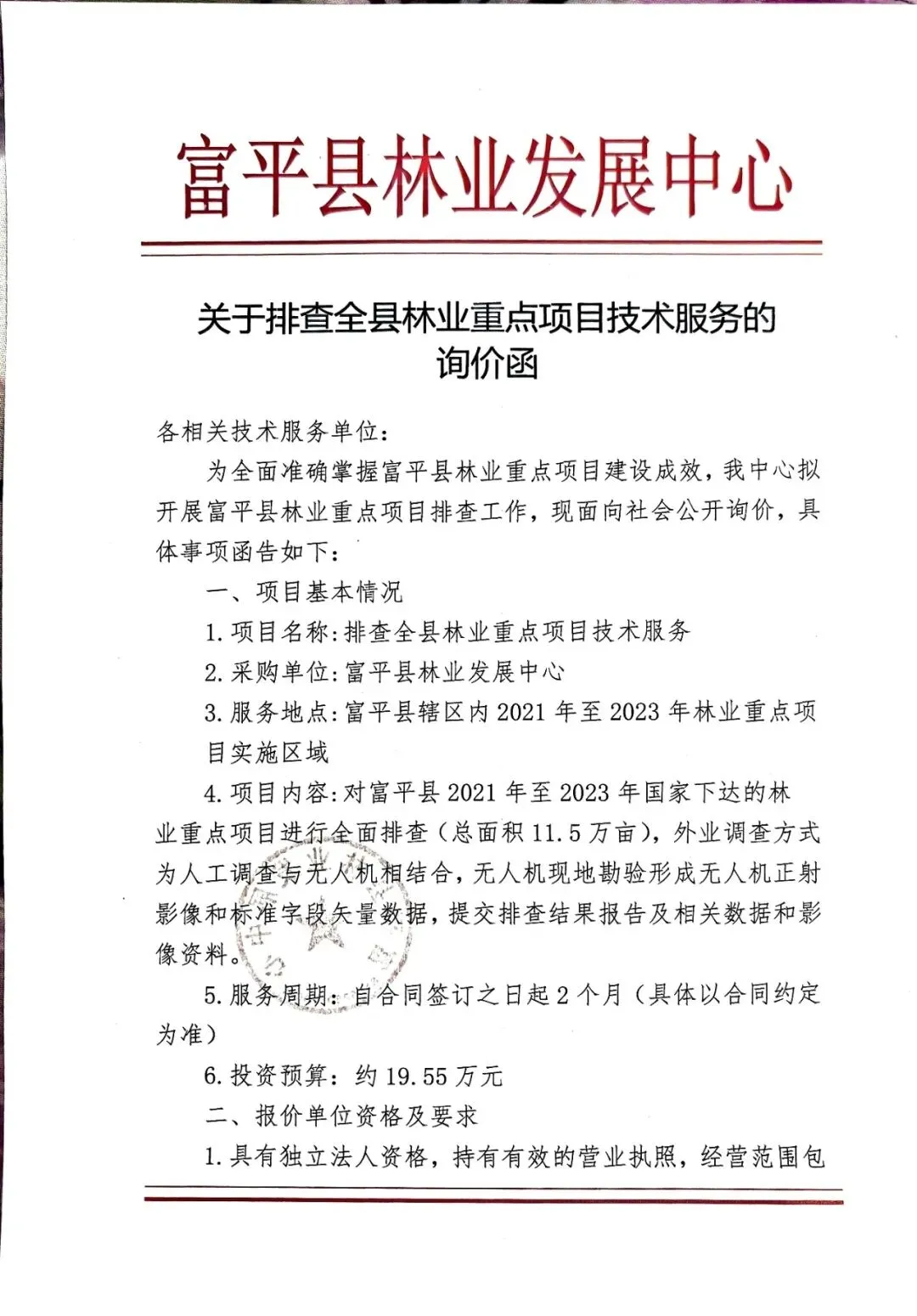 >富平县林业发展中心关于排查全县林业重点项目技术服务的询价函