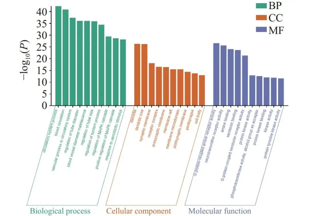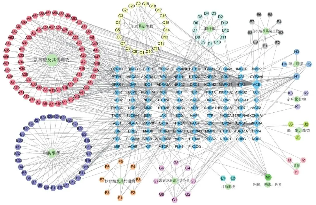 本章节重点包括:1. 采用UPLC-ESI-QTRAP-MS/MS技术分析牡蛎消化产物,在四个消化阶段共鉴定出1231个代谢物,其中氨基酸及其代谢物占比最高(33.23%);2. 通过数据库筛选获得106个牡蛎抗疲劳潜在作用靶点,构建"活性成分-靶点"网络,发现脂肪酰类和氨基酸类成分与核心靶点关联最密切;3. 蛋白互作网络识别出25个核心靶点,包括SRC、EGFR、PTGS2等;4. GO和KEGG富集分析显示靶点主要富集在神经递质受体活性、钙信号通路、MAPK信号通路等与疲劳相关的生物过程和通路;5. 分子对接验证了关键活性成分与核心靶蛋白具有较强结合能力,表明牡蛎通过多成分、多靶点、多通路机制发挥抗疲劳作用。