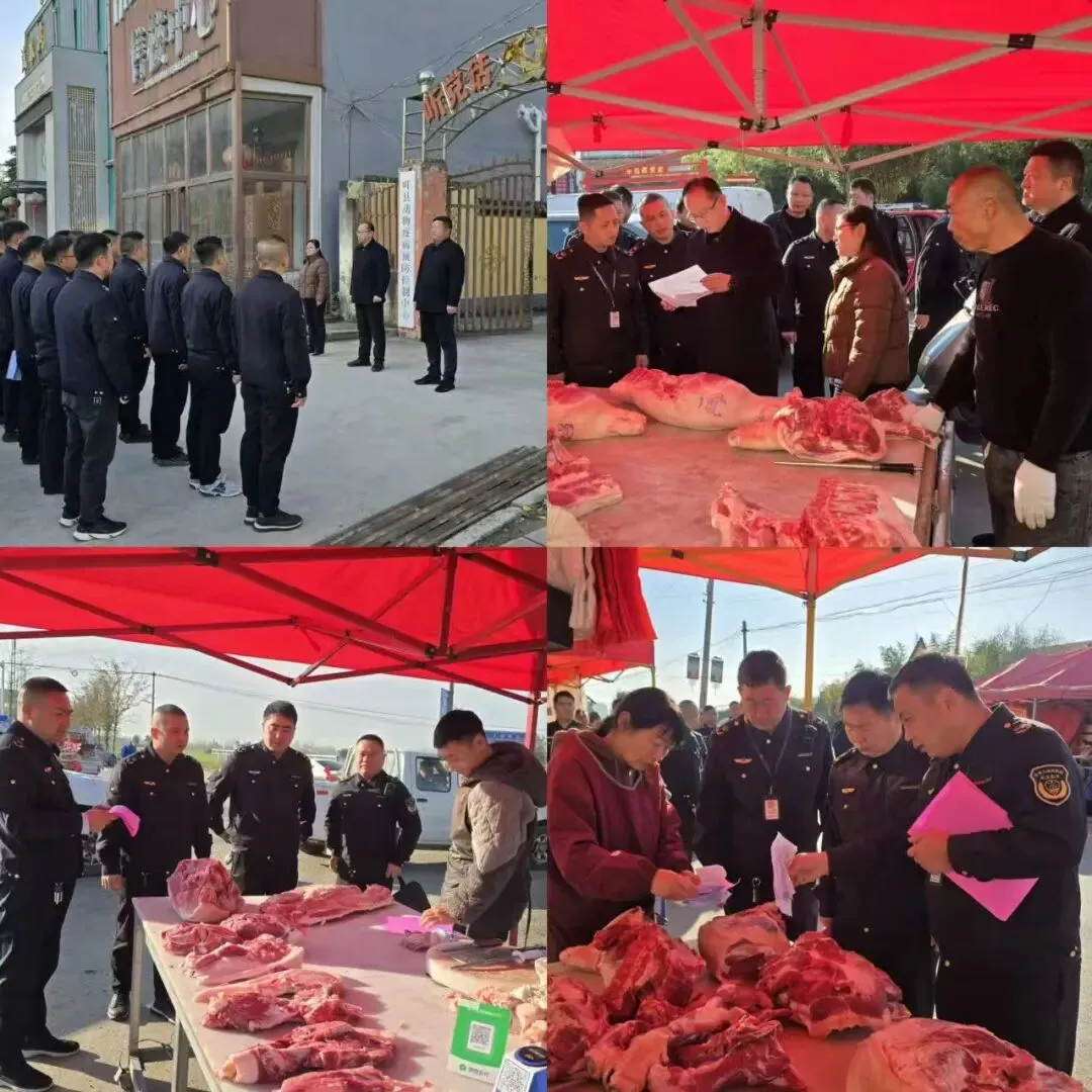 (二)11月20日上午,为进一步规范生猪屠宰经营秩序,严厉打击生猪私屠滥宰违法行为,保障群众“舌尖上的安全”,县农业农村局党组书记、局长魏进庚,副局长杜战辉,副主任科员王永芹一行带领农业综合行政执法大队到九龙街道孟奉村开展打击生猪私屠滥宰集中宣传活动。活动现场,通过发放宣传单页、张贴横幅、现场讲解等方式,全方位、多角度向摊贩经营者和过往群众普及了生猪屠宰相关法律法规和食品安全知识,并公布了举报电话,鼓励群众积极参与监督,共同打击生猪私屠滥宰违法行为。此次宣传活动共发放宣传手册、倡议书等资料 400 余份,接受群众咨询 85 余人次,悬挂横幅 40 余条,营造了“人人知晓、人人参与、人人监督”的良好社会氛围。