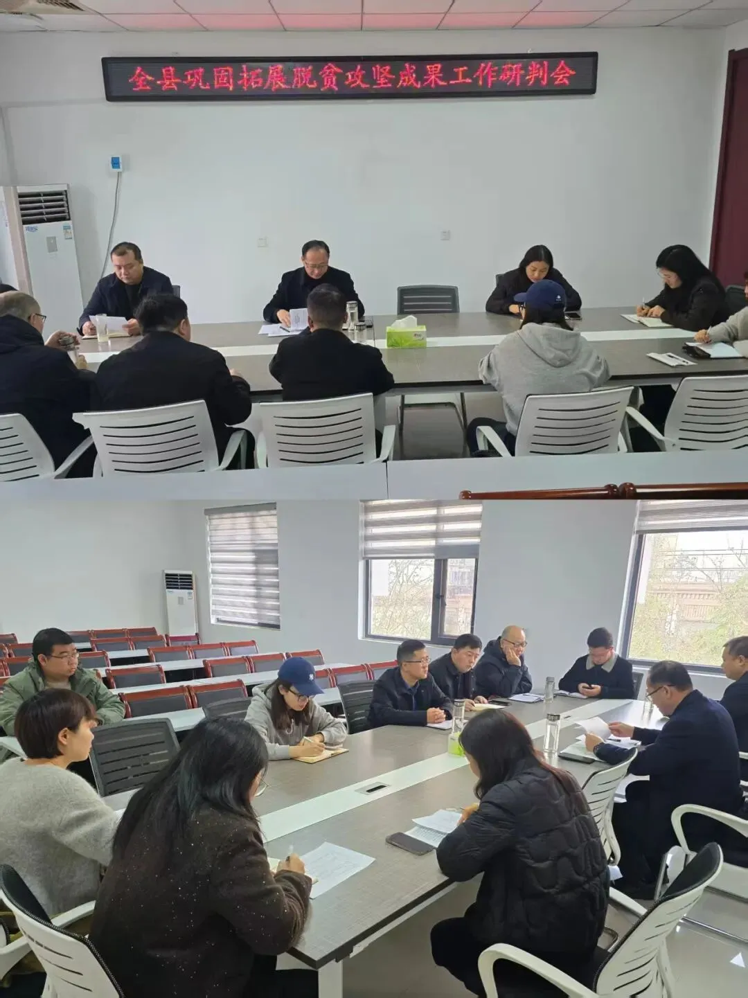 (三)11月22日上午,县农业农村局党组书记、局长魏进庚主持召开全县巩固拓展脱贫攻坚成果工作研判会,会上围绕着数据质量、防返贫监测、放心村打造、产业就业帮扶、行业部门政策落实、村容村貌、户容户貌等,全面梳理排查不足与潜在风险,逐项分析研判,交流解决方案,并要求与会人员要拧紧责任链条、细化工作举措,推动各项工作落地见效,持续巩固提升脱贫攻坚成果。县农业农村局相关分管领导、相关业务股室负责人参加会议。