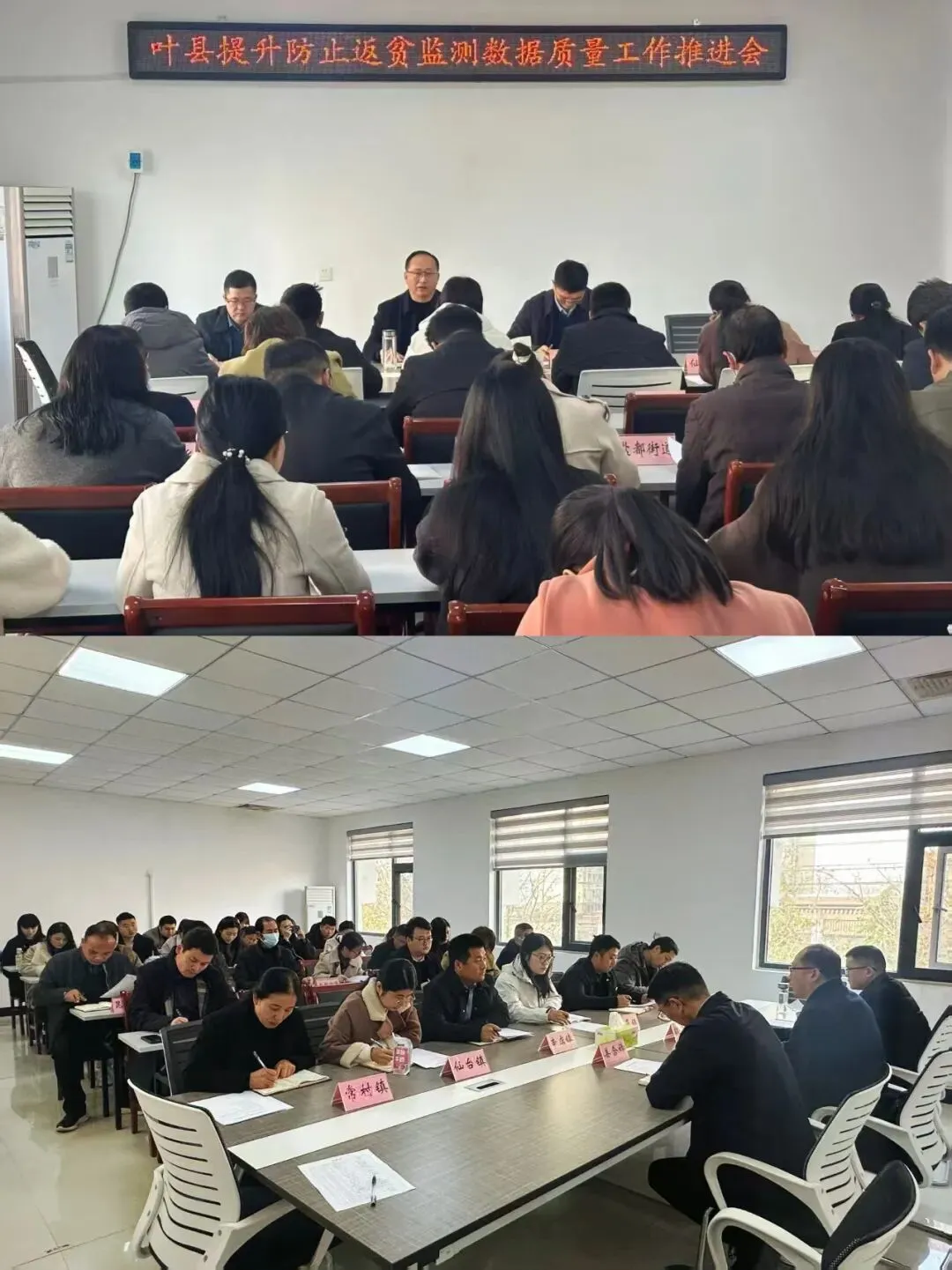 (四)11月23日上午,县农业农村局党组书记、局长魏进庚主持召开全县提升防止返贫监测数据质量工作推进会。会议围绕着数据质量提升、防返贫监测强化、明白卡与暖心墙规范张贴、"放心村"创建及村容村貌、户容户貌整治等重点任务进行再安排、再部署,并就省平台预警信息受理办结的工作方法步骤开展业务培训。魏进庚指出,防返贫监测数据质量是巩固拓展脱贫攻坚成果的“生命线”,各乡镇(街道)要提高政治站位,以“零差错”为目标,从严从细抓好数据采集、录入、核实全流程;要将明白卡、暖心墙张贴落实到位,让群众熟知掌握享受政策;要熟练掌握省平台预警信息处置流程,做到响应及时、处置高效、办结规范,坚决守住不发生规模性返贫的底线。18个乡镇(街道)乡村振兴服务中心主任、信息员参加会议。