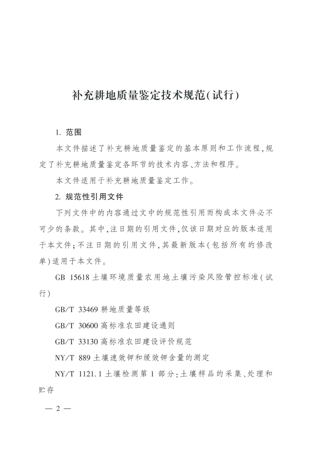 >重磅|农业农村部印发《补充耕地质量鉴定技术规范(试行)》