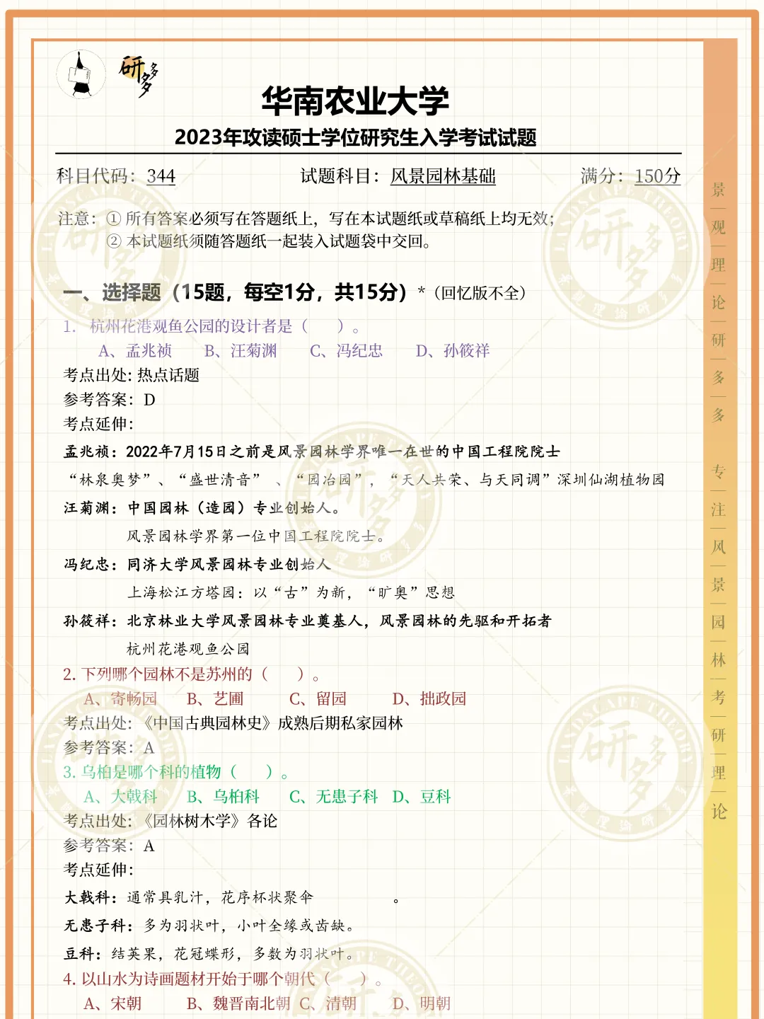 研多多 | 华南农业大学2023年344风景园林基础真题解析~