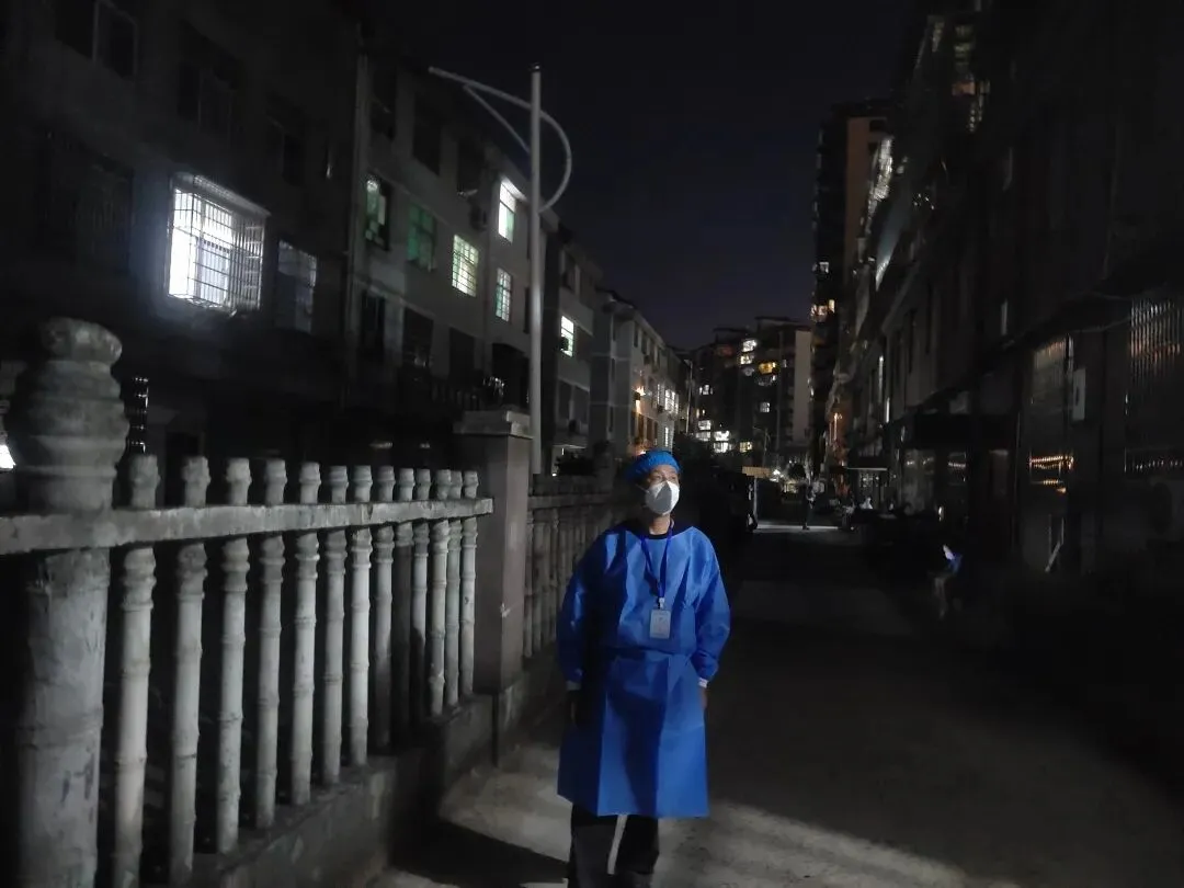 “大家别出门!再坚持一下我们就胜利了。”夜幕降临,蓝色身影在小区内反复巡逻,避免发生居民扎堆“透气”、翻墙外出的情况,让夜间守护“不降温”,疫情防控“不打烊”。