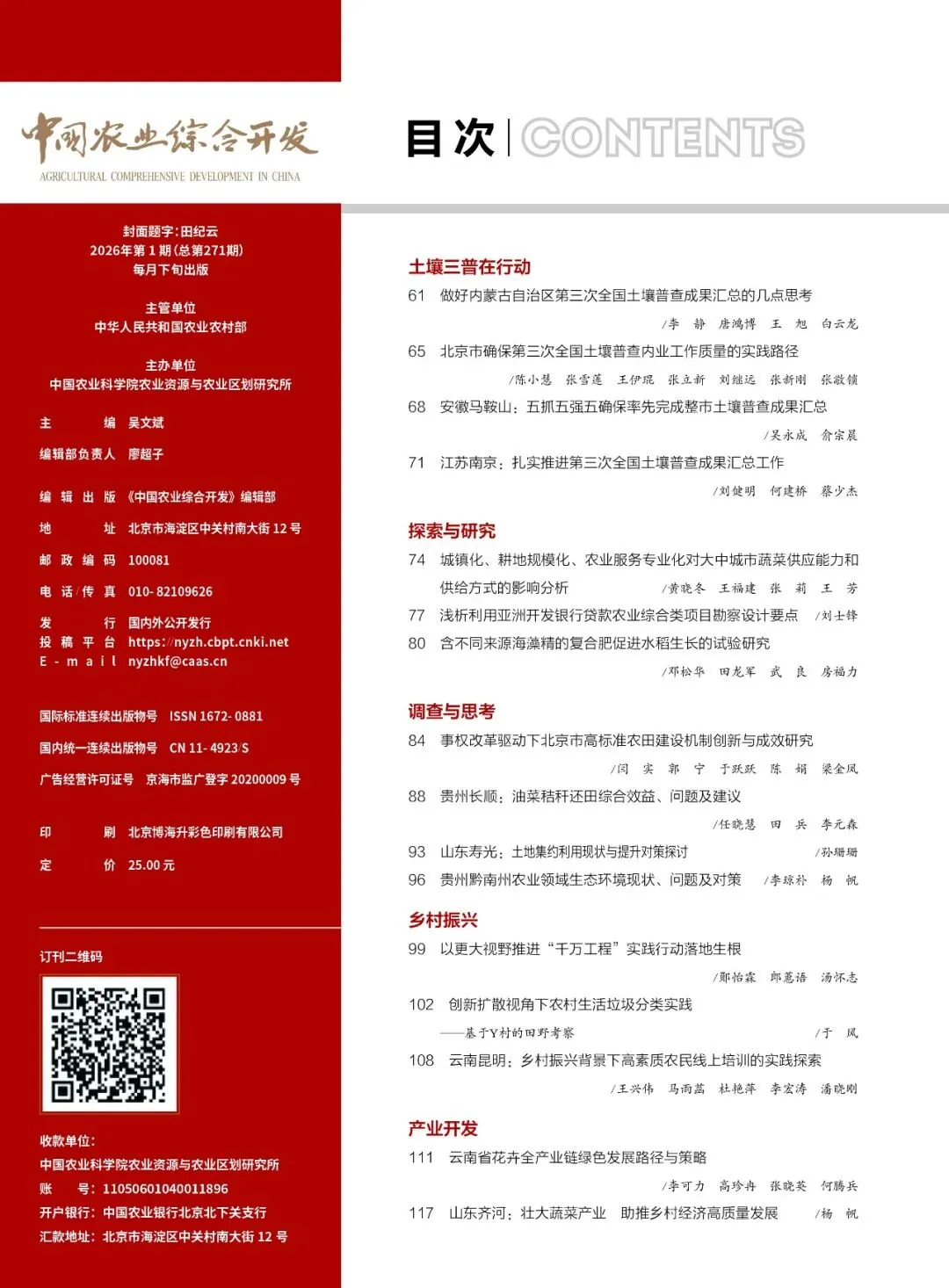 《中国农业综合开发》2026年第1期(总第271期)声明:近期发现多起假冒本编辑部名义向作者索要审稿费事件。编辑部不会向作者打电话索要审稿费。编辑部只有一个对公账号,请作者不要向其他银行账号汇款,以免受骗。