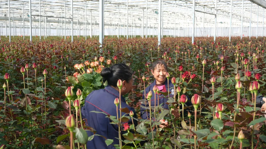 依托得天独厚的自然禀赋,马龙区重点培育苹果、蓝莓、花卉等特色优势产业,通过建设标准化生产基地、推广“龙头企业+合作社+基地+农户”联农带农模式,引导特色产业向优势区域集聚,形成了“一牛一果一花”主导优势产业集群。其中,“马龙苹果”凭借脆甜爽口的独特口感,成功获评全国名特优新农产品,全区苹果种植面积达4万余亩,年产值突破3.6亿元;月望乡、纳章镇的蓝莓大棚里,基质栽培、水肥一体化等先进农业技术得到广泛应用,蓝莓品质稳步提升,目前全区蓝莓种植面积达1.5万余亩,年产值超3亿元;花卉产业更是呈现多点开花的良好态势,3万余亩花卉基地构成了绚丽多彩的田园画卷,马龙爱必达园艺科技有限公司的智能温室内,培育的20余种玫瑰年产超2000万枝,全区花卉产业年产值达5.6亿元。