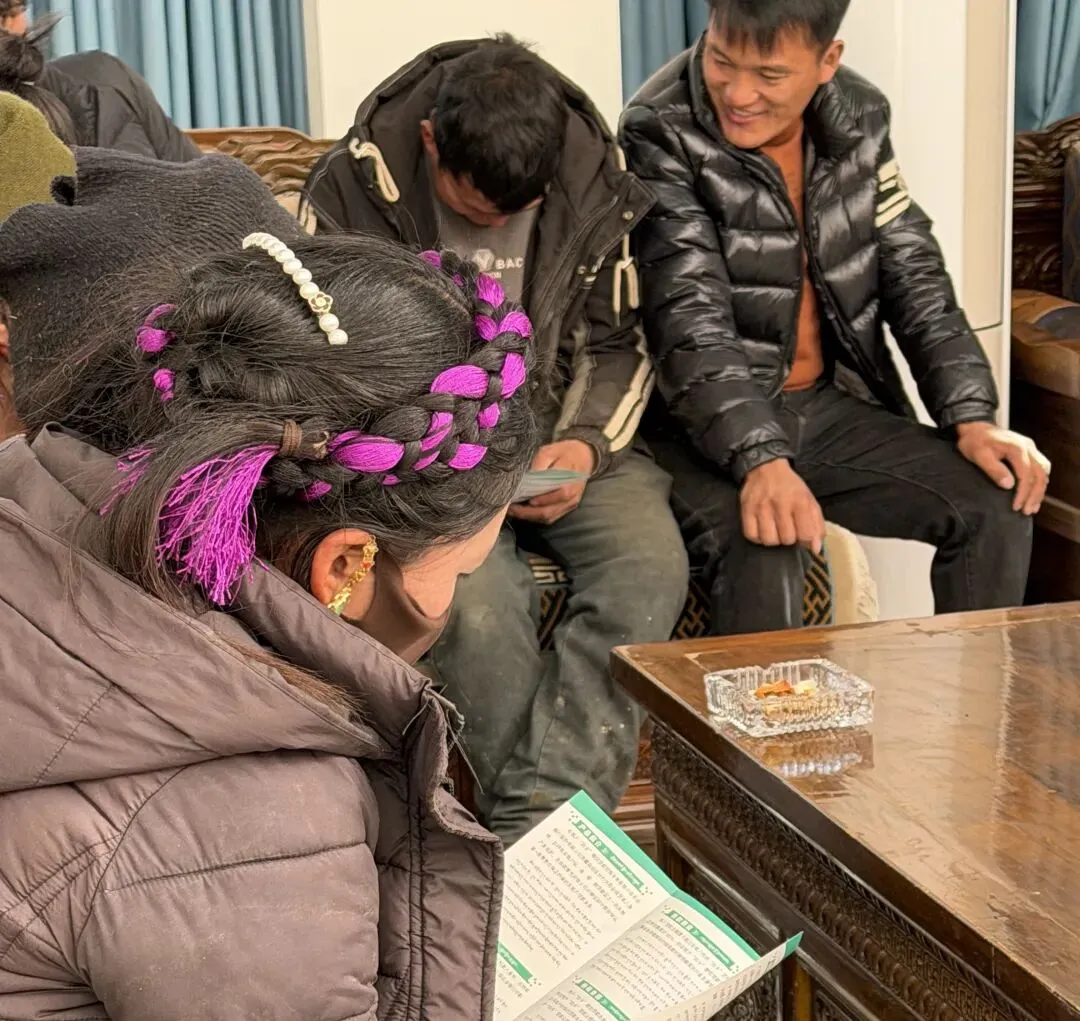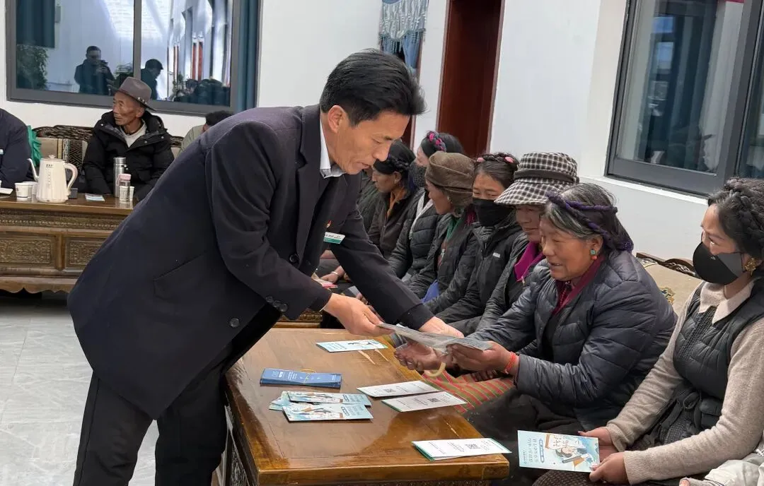 支行负责人以接地气的语言,宣讲党的二十届四中全会关于 “因地制宜完善乡村建设实施机制” 的部署,以及桑珠孜区 “两会” 推进城乡融合发展的政策举措,结合农行示范村建设初衷与具体举措,引导广大农牧民坚定听党话、感党恩、跟党走的信念。