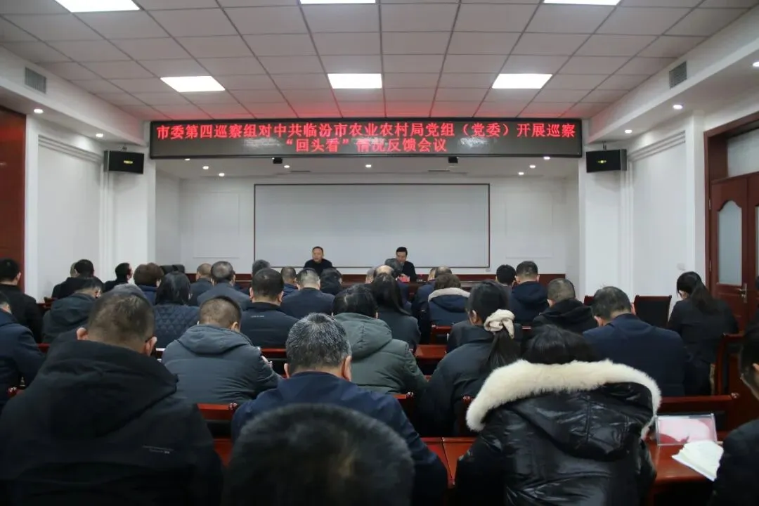 根据市委巡察工作的统一部署,2026年1月29日,市委第四巡察组对中共临汾市农业农村局党组开展巡察“回头看”情况反馈会议召开。市委第四巡察组组长宋达颖、副组长任建忠、联络员孙云亮、组员尉志荣,驻局纪检监察组组长王建明出席会议。会前,宋达颖组长主持召开向市农业农村局党组书记、局长、二级巡视员栗俊昌反馈巡察“回头看”情况的会议。会上,宋达颖反馈了巡察“回头看”情况并提出工作要求,栗俊昌主持会议并作表态发言。