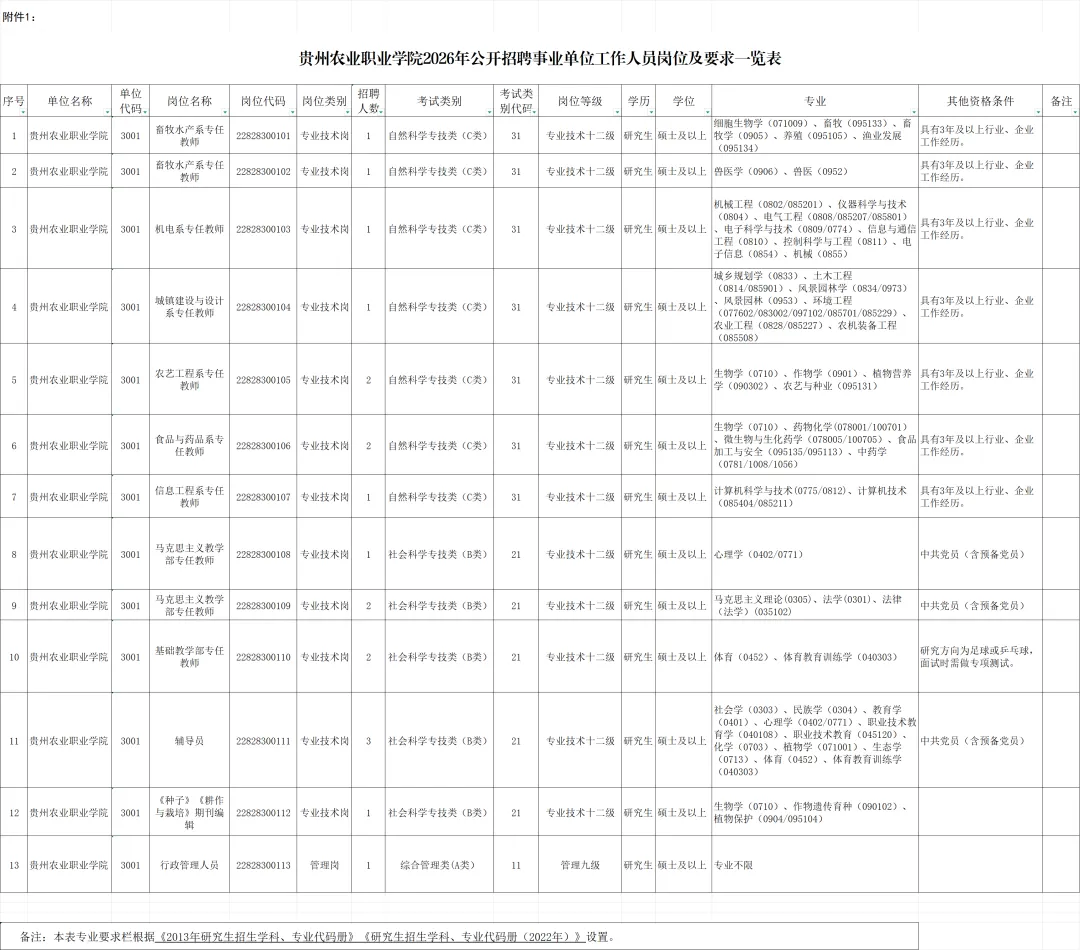 在贵州省人力资源和社会保障厅官网(https://rst.guizhou.gov.cn/)、贵州农业职业学院官网(https://www.gznyzyxy.cn/)发布公开招聘公告。公告时间从2026年1月28日到2026年2月6日。